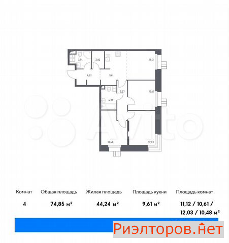 Общая площадь 74.9 м