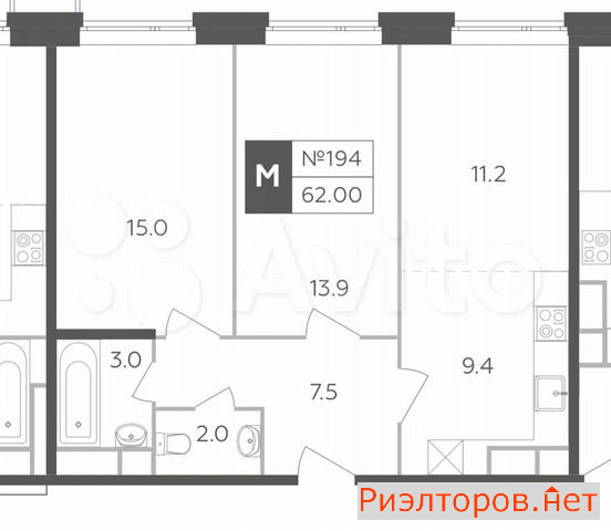 Общая площадь 62.0 м