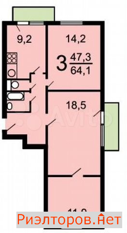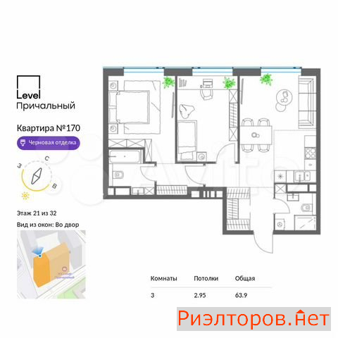 Общая площадь 63.0 м