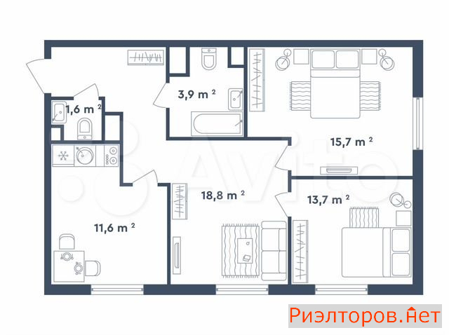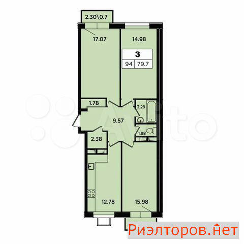 Общая площадь 79.7 м