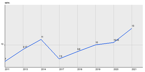 7 млн. руб, а в 2021 году - 13 млн. руб. Таким образом, средняя стоимость трёхкомнатных квартир в районе "Богородское" за