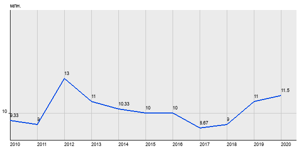 9.33 млн. руб, а в 2020 году - 11.5 млн. руб. Таким образом, средняя стоимость трёхкомнатных квартир в районе "бутово" за