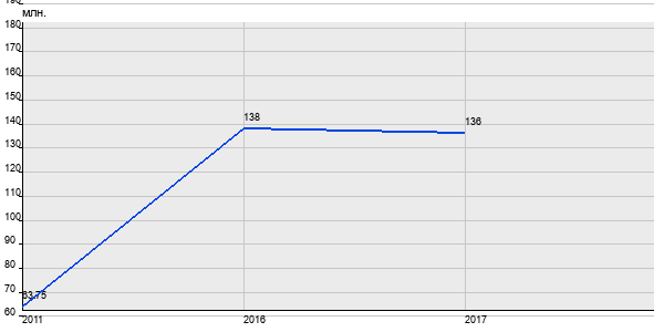 63.75 млн. руб, а в 2017 году - 136 млн. руб. Таким образом, средняя стоимость трёхкомнатных квартир в районе "Тверской" за