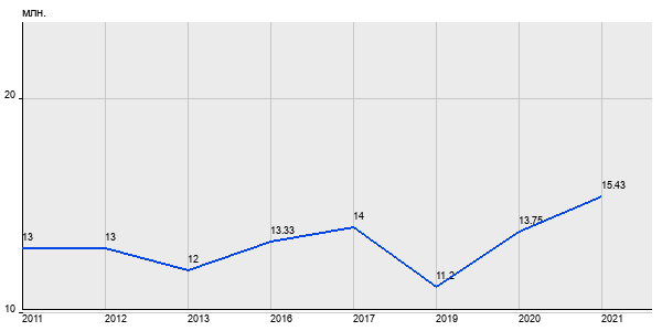 13 млн. руб, а в 2021 году - 15.43 млн. руб. Таким образом, средняя стоимость трёхкомнатных квартир в районе "Ясенево" за