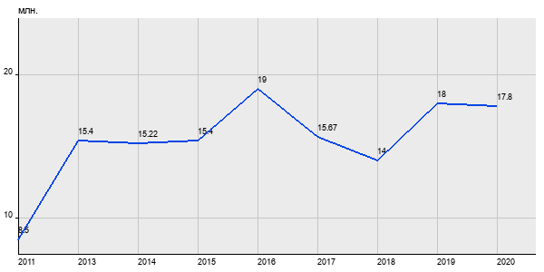 8.5 млн. руб, а в 2020 году - 17.8 млн. руб. Таким образом, средняя стоимость двухкомнатных квартир в районе "Обручевский" за