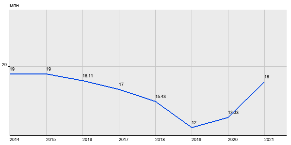 19 млн. руб, а в 2021 году - 18 млн. руб. Таким образом, средняя стоимость трёхкомнатных квартир в районе "Басманный" за