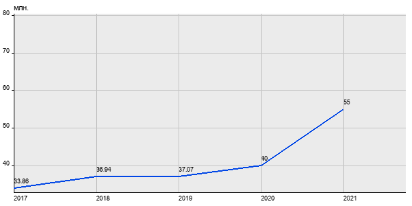 33.86 млн. руб, а в 2021 году - 55 млн. руб. Таким образом, средняя стоимость трёхкомнатных квартир в районе "Хорошёвский" за