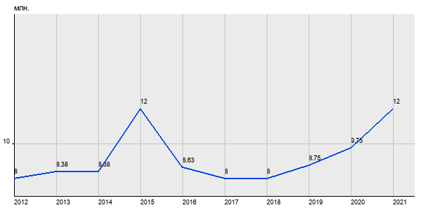 8 млн. руб, а в 2021 году - 12 млн. руб. Таким образом, средняя стоимость трёхкомнатных квартир в районе "Бибирево" за