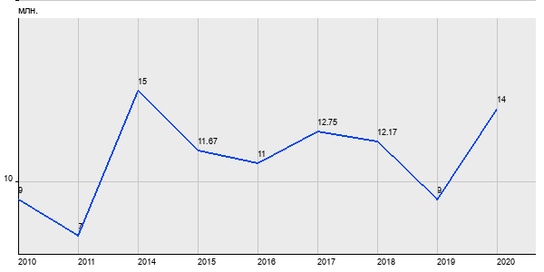 9 млн. руб, а в 2020 году - 14 млн. руб. Таким образом, средняя стоимость трёхкомнатных квартир в районе "Головинский" за