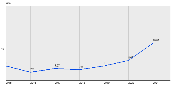 8 млн. руб, а в 2021 году - 10.83 млн. руб. Таким образом, средняя стоимость двухкомнатных квартир в районе "Марьино" за