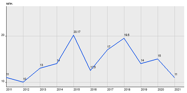 11 млн. руб, а в 2021 году - 11 млн. руб. Таким образом, средняя стоимость трёхкомнатных квартир в районе "Сокольники" за