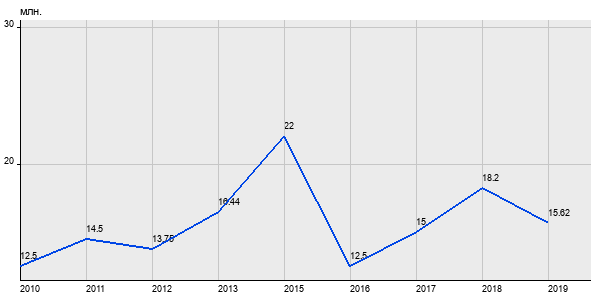 12.5 млн. руб, а в 2019 году - 15.62 млн. руб. Таким образом, средняя стоимость трёхкомнатных квартир в районе "" за