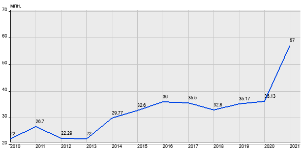 22 млн. руб, а в 2021 году - 57 млн. руб. Таким образом, средняя стоимость трёхкомнатных квартир в районе "Арбат" за