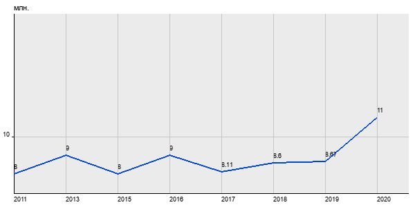 8 млн. руб, а в 2020 году - 11 млн. руб. Таким образом, средняя стоимость трёхкомнатных квартир в районе "Чертаново Центральное" за