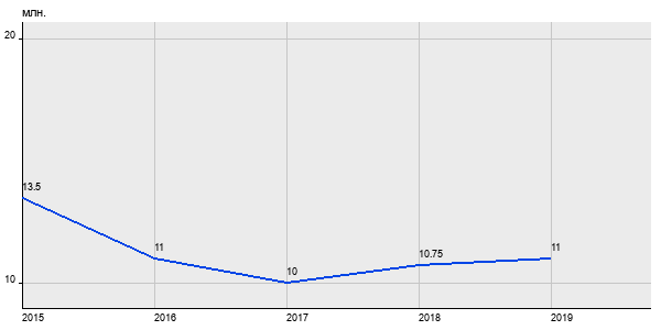 13.5 млн. руб, а в 2019 году - 11 млн. руб. Таким образом, средняя стоимость трёхкомнатных квартир в районе "Люблино" за