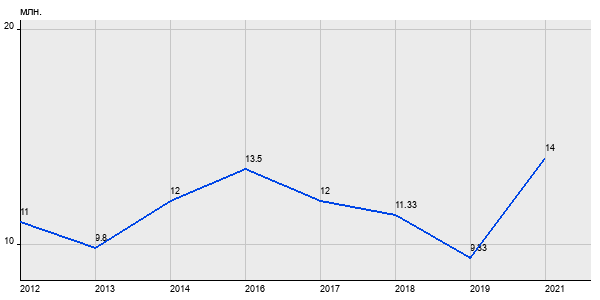 11 млн. руб, а в 2021 году - 14 млн. руб. Таким образом, средняя стоимость двухкомнатных квартир в районе "Коньково" за