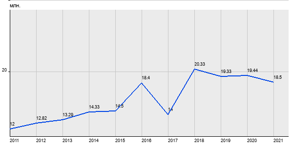 12 млн. руб, а в 2021 году - 18.5 млн. руб. Таким образом, средняя стоимость трёхкомнатных квартир в районе "Пресненский" за