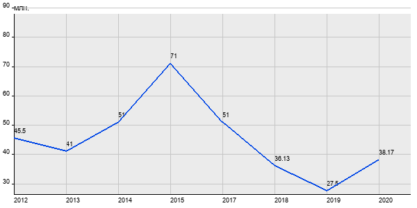 45.5 млн. руб, а в 2020 году - 38.17 млн. руб. Таким образом, средняя стоимость трёхкомнатных квартир в районе "Басманный" за