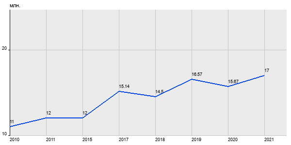 11 млн. руб, а в 2021 году - 17 млн. руб. Таким образом, средняя стоимость трёхкомнатных квартир в районе "Филёвский Парк" за