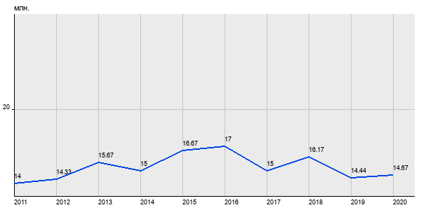 14 млн. руб, а в 2020 году - 14.67 млн. руб. Таким образом, средняя стоимость трёхкомнатных квартир в районе "Чертаново Центральное" за