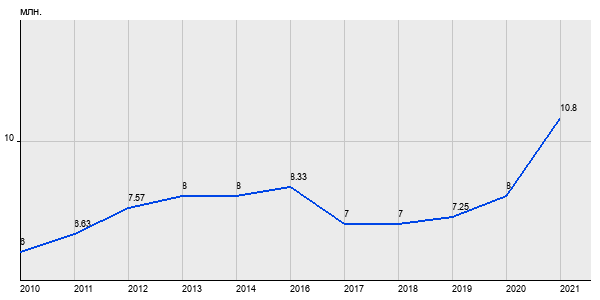 6 млн. руб, а в 2021 году - 10.8 млн. руб. Таким образом, средняя стоимость трёхкомнатных квартир в районе "Гольяново" за