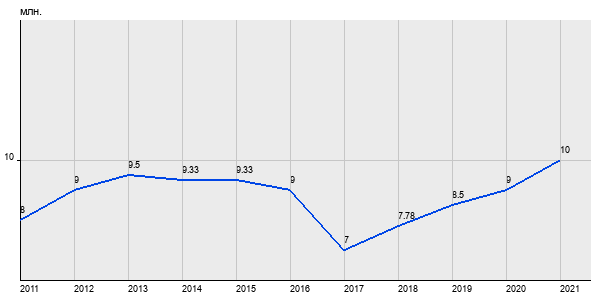 8 млн. руб, а в 2021 году - 10 млн. руб. Таким образом, средняя стоимость трёхкомнатных квартир в районе "Южное Бутово" за