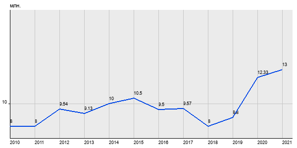 8 млн. руб, а в 2021 году - 13 млн. руб. Таким образом, средняя стоимость двухкомнатных квартир в районе "Бабушкинский" за
