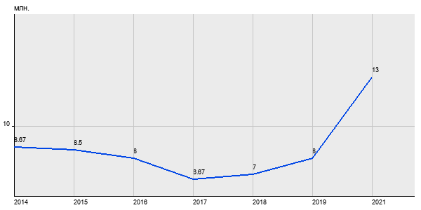 8.67 млн. руб, а в 2021 году - 13 млн. руб. Таким образом, средняя стоимость трёхкомнатных квартир в районе "" за