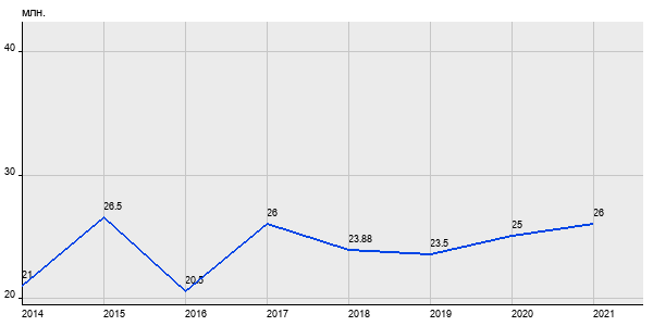 21 млн. руб, а в 2021 году - 26 млн. руб. Таким образом, средняя стоимость двухкомнатных квартир в районе "Строгино" за