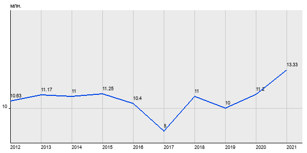 10.63 млн. руб, а в 2021 году - 13.33 млн. руб. Таким образом, средняя стоимость трёхкомнатных квартир в районе "Люблино" за