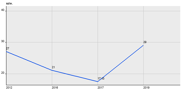 27 млн. руб, а в 2019 году - 29 млн. руб. Таким образом, средняя стоимость двухкомнатных квартир в районе "Аэропорт" за