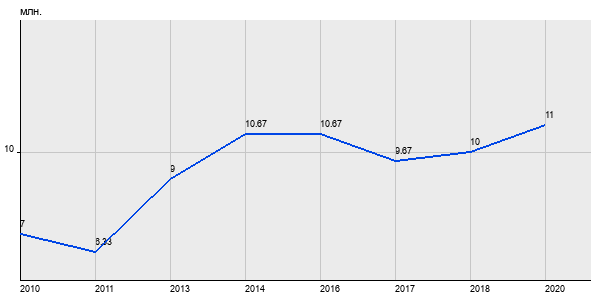 7 млн. руб, а в 2020 году - 11 млн. руб. Таким образом, средняя стоимость трёхкомнатных квартир в районе "Отрадное" за