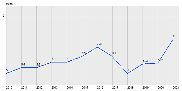 5 млн. руб, а в 2021 году - 8 млн. руб. Таким образом, средняя стоимость однокомнатных квартир в районе "Щукино" за