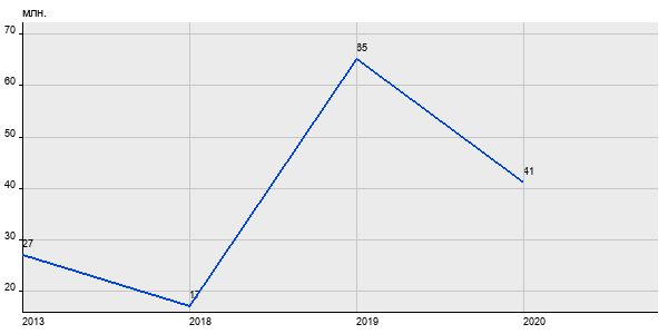 27 млн. руб, а в 2020 году - 41 млн. руб. Таким образом, средняя стоимость трёхкомнатных квартир в районе "Хамовники" за