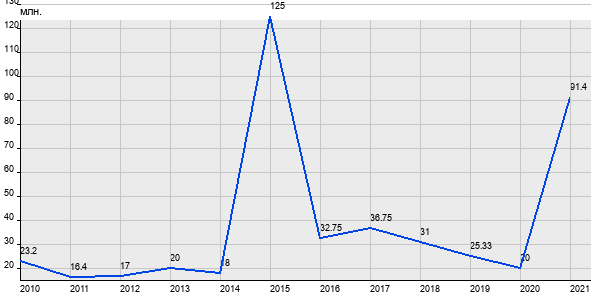 23.2 млн. руб, а в 2021 году - 91.4 млн. руб. Таким образом, средняя стоимость трёхкомнатных квартир в районе "Хамовники" за