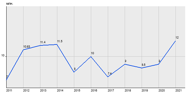 7 млн. руб, а в 2021 году - 12 млн. руб. Таким образом, средняя стоимость трёхкомнатных квартир в районе "Гольяново" за