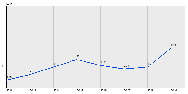 8.25 млн. руб, а в 2019 году - 12.5 млн. руб. Таким образом, средняя стоимость трёхкомнатных квартир в районе "Строгино" за
