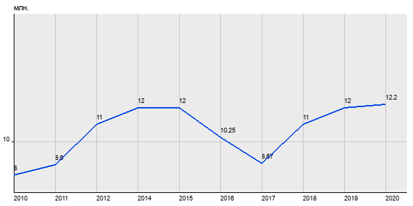 8 млн. руб, а в 2020 году - 12.2 млн. руб. Таким образом, средняя стоимость двухкомнатных квартир в районе "Лефортово" за