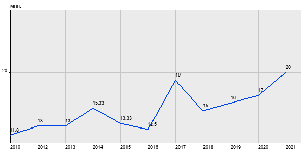 11.8 млн. руб, а в 2021 году - 20 млн. руб. Таким образом, средняя стоимость двухкомнатных квартир в районе "Арбат" за