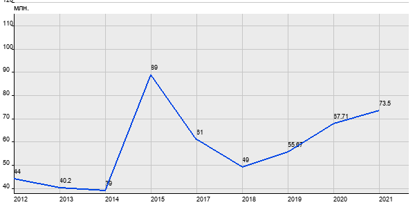 44 млн. руб, а в 2021 году - 73.5 млн. руб. Таким образом, средняя стоимость трёхкомнатных квартир в районе "Басманный" за