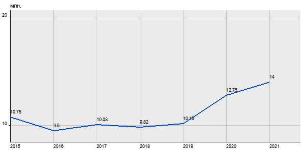 10.75 млн. руб, а в 2021 году - 14 млн. руб. Таким образом, средняя стоимость двухкомнатных квартир в районе "Выхино-Жулебино" за