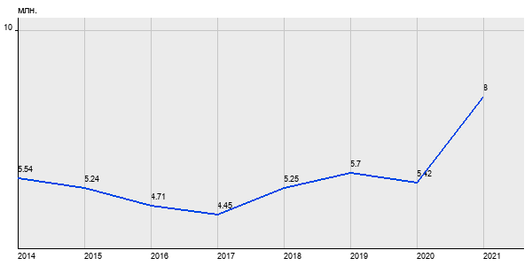 5.54 млн. руб, а в 2021 году - 8 млн. руб. Таким образом, средняя стоимость однокомнатных квартир в районе "Гольяново" за