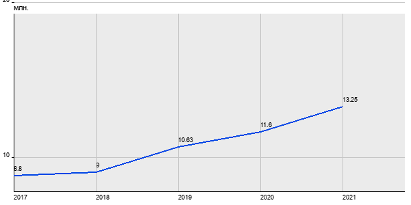 8.8 млн. руб, а в 2021 году - 13.25 млн. руб. Таким образом, средняя стоимость однокомнатных квартир в районе "Таганский" за