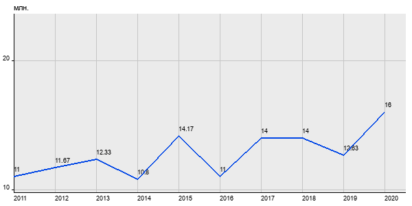 11 млн. руб, а в 2020 году - 16 млн. руб. Таким образом, средняя стоимость трёхкомнатных квартир в районе "Даниловский" за