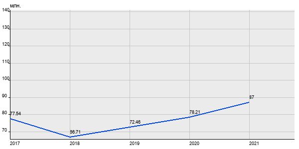 77.54 млн. руб, а в 2021 году - 87 млн. руб. Таким образом, средняя стоимость двухкомнатных квартир в районе "Тверской" за