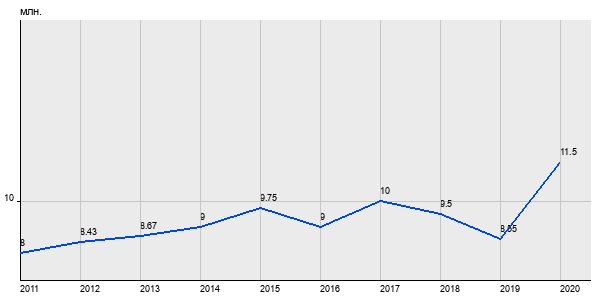 8 млн. руб, а в 2020 году - 11.5 млн. руб. Таким образом, средняя стоимость трёхкомнатных квартир в районе "Орехово-Борисово Южное" за