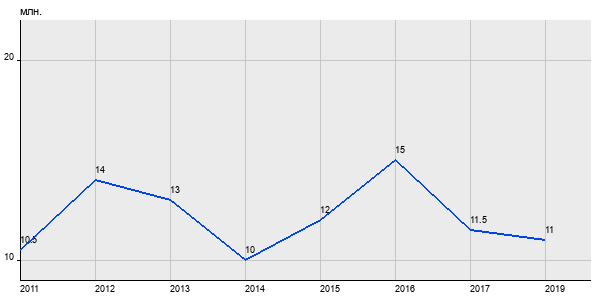 10.5 млн. руб, а в 2019 году - 11 млн. руб. Таким образом, средняя стоимость трёхкомнатных квартир в районе "Отрадное" за
