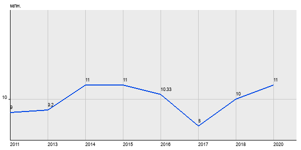 9 млн. руб, а в 2020 году - 11 млн. руб. Таким образом, средняя стоимость двухкомнатных квартир в районе "Басманный" за