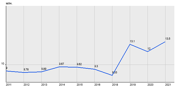 9 млн. руб, а в 2021 году - 13.5 млн. руб. Таким образом, средняя стоимость трёхкомнатных квартир в районе "Чертаново Южное" за