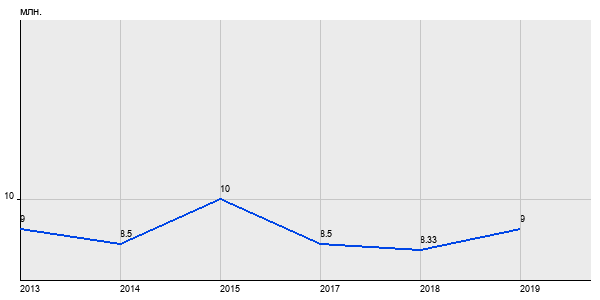 9 млн. руб, а в 2019 году - 9 млн. руб. Таким образом, средняя стоимость трёхкомнатных квартир в районе "Орехово-Борисово Северное" за